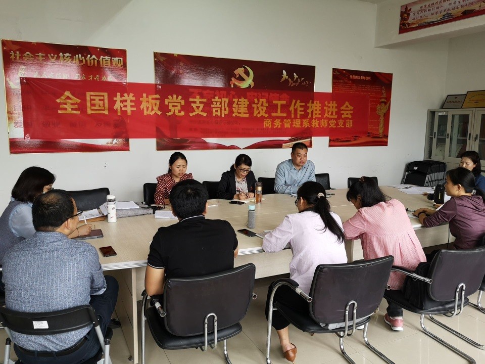 9月29日下午,世界杯体育官方网站商务管理系教师党支部召开全国样板支部建设工作推进会,学院党委副书记(主持党委工作)廖新平、副院长张美涛、办公室主任王艳、支部全体党员出席了会议。会议由党支部书记龚立恒主持。