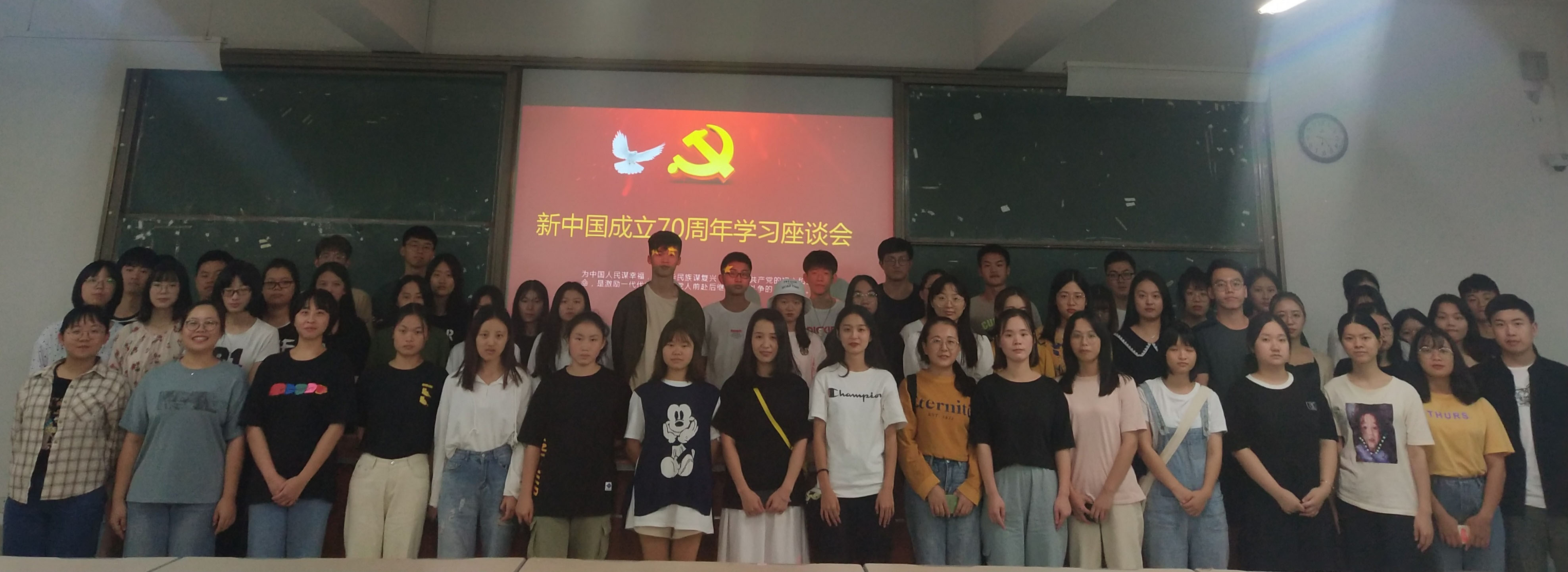 2019年10月9日下午18:00点,商务管理系学生党支部在马尾校区诚信301和连江校区诚信楼阶一教室同时举行“庆祝新中国成立70周年学习座谈会”主题党日活动。全体积极分子参加本次活动,学院团委副书记、党支部书记蔡斌、党委委员张榕、郑亚梅参加活动。