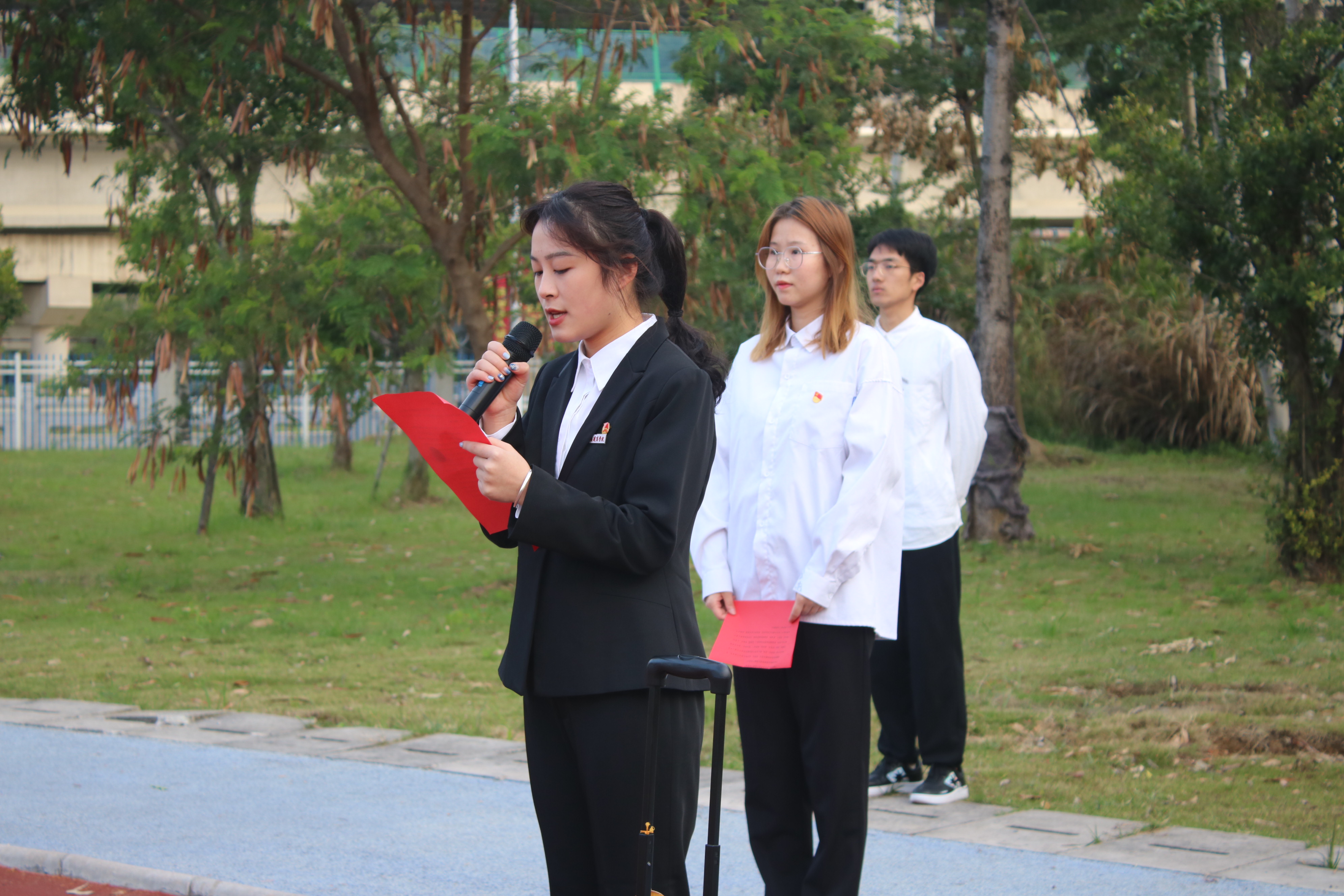 全体庄严肃穆,国旗护卫队队员们迈着矫健的步伐护送鲜艳的五星红旗缓缓走来,国歌奏响,五星红旗冉冉升起,全体心潮澎湃,向国旗行注目礼。本次升旗仪式由党员代表陈燕同学、积极分子代表陈欣彤同学及学生干部代表陈妍丽同学一同分享党的十九届六中全会重要内容学习体会,呼吁广大青年要迅速掀起学习贯彻落实党的十九届六中全会精神的热潮,领会深刻内涵,把握核心要义,努力推进全会精神落地生根,发挥青年人的强大力量。