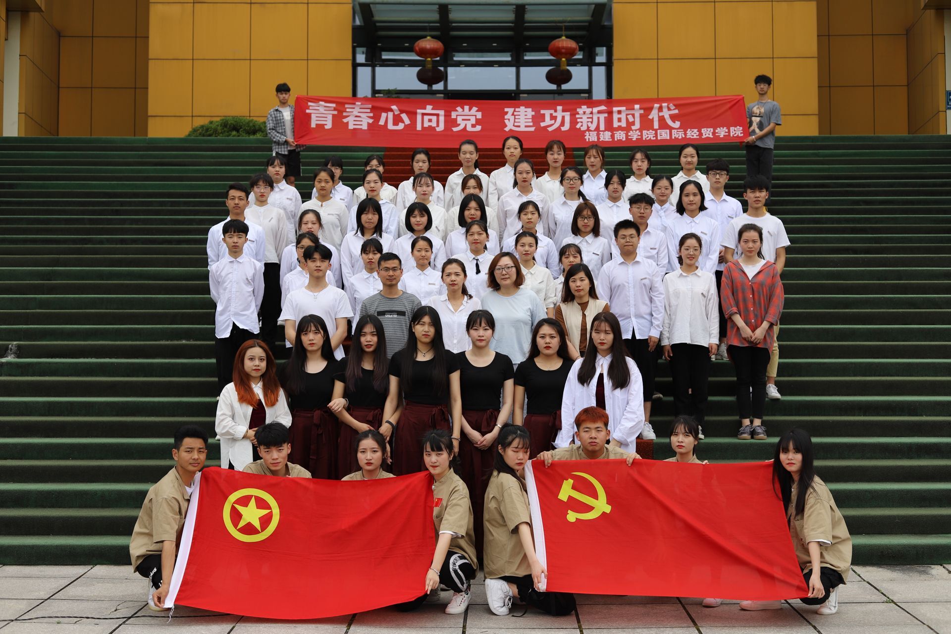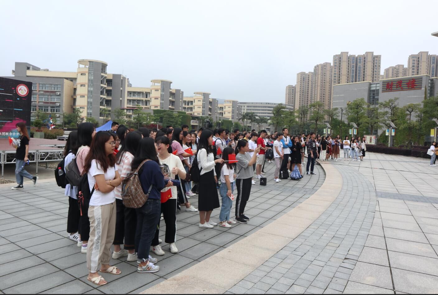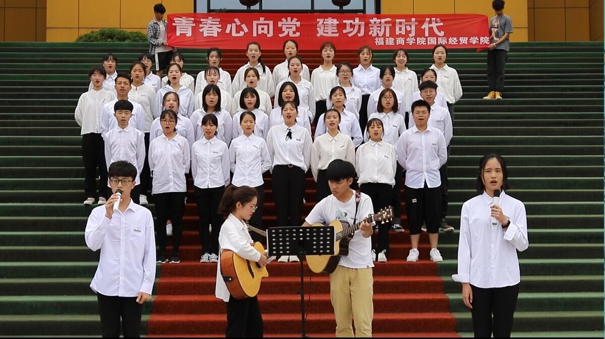 为纪念五四运动100周年,为弘扬五四的爱国精神。 5月14日,世界杯体育官方网站的学子们于马尾校区白鸽广场开展“青春心向党,建功新时代”系列活动之快闪活动。