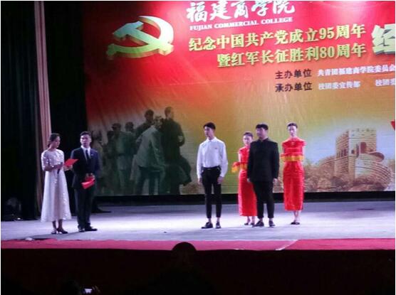 比赛准备开始时,紧张的气氛随之而来,不过这一点也无法磨灭观众们的热情。比赛开始了,复古的服装、长征的氛围、高昂激情的选手,诉说着自己对长征人员与精神的崇拜和赞扬,使观众身临其境,激发了大家的热爱祖国激情,更弘扬了爱国主义精神。一组组、一幕幕、一个个紧紧的相连,让我们深深的体会着这热烈的爱国精神。比赛已到尾声,最终我系荣获一等奖、二等奖,场下欢呼一片。