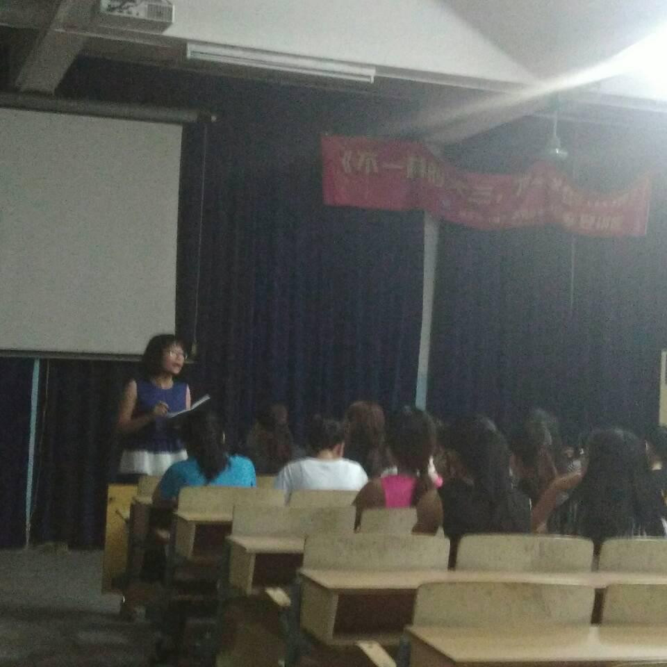 2015年9月6日晚上6:30,湖前校区图书馆7楼召开经贸系2013级国贸市营专业开学主题班会,前任辅导员林时云和现任辅导员王鹤云都参加。