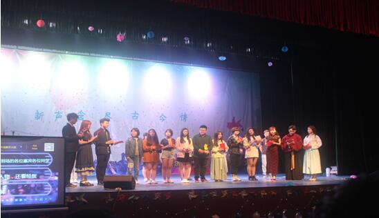 所以一开场比赛气氛便比较紧张,同学们“八仙过海,各展神通”,歌喉特点也不尽相同。而本次比赛当真是贴合了“古今情”的主题,演唱曲目的风格从复古风到现代风,从民谣到流行音乐应有尽有。小礼BOOM组合的《甜甜的》点燃全场的掌声;赖雯妍声音清澈演唱的《燕归巢》带大家去了“晨风抚芭蕉,寒梅落尽”的天地中走上一程;吴淞的《童话镇》再加上玩偶送糖,引得大家童心大起,全场沸腾;而闫江浩暖暖的嗓音送上的《南山南》仿佛要唱入人的心里去,应对全场合拍;云南男孩周克垚自弹自唱的《再见吧,喵小姐》,声音温柔富有磁性,不出所料摘得桂冠。以及其他选手的演唱都让同学们获得了极佳的视听享受。