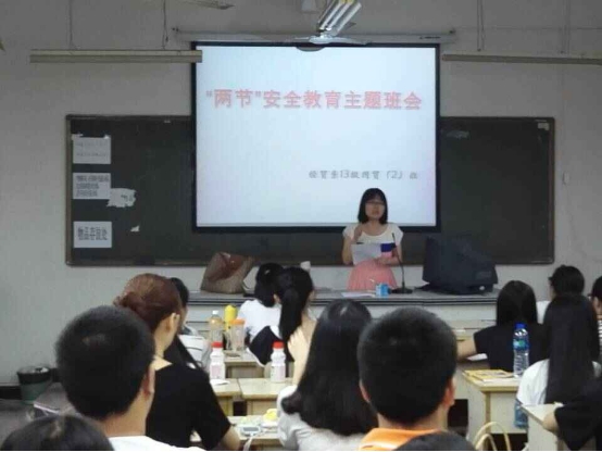 2015年9月25日,下午4:35,经贸系13级国贸2班在湖前校区红楼204教室举行“两节”安全教育主题班会。
