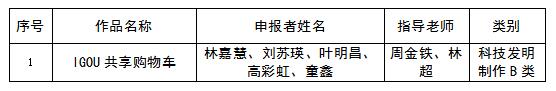 根据《关于开展第十四届“挑战杯”福建省大学生课外学术科技作品竞赛的预通知》文件要求,经各院系申报推荐、校团委资格审核、校团委全委会评议,并结合申报材料,研究提出拟推荐IGOU共享购物车作品参与竞赛。现将结果予以公示,如有异议,请向院团总支反映。