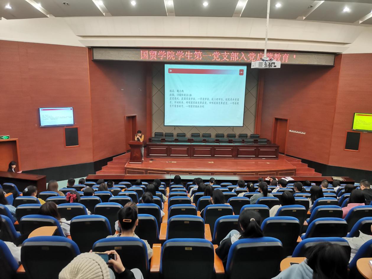 为学习贯彻落实中国共产党十九届六中全会重要精神,引导新生端正入党动机,积极向党组织靠拢,2021年11月25日,世界杯体育官方网站学生第一党支部在学术报告厅举办“端正入党动机、坚定理想信念”新生入党教育活动。世界杯体育官方网站学生第一党支部党员、2021级国际商务专业和跨境电子商务专业全体新生参加了此次活动。