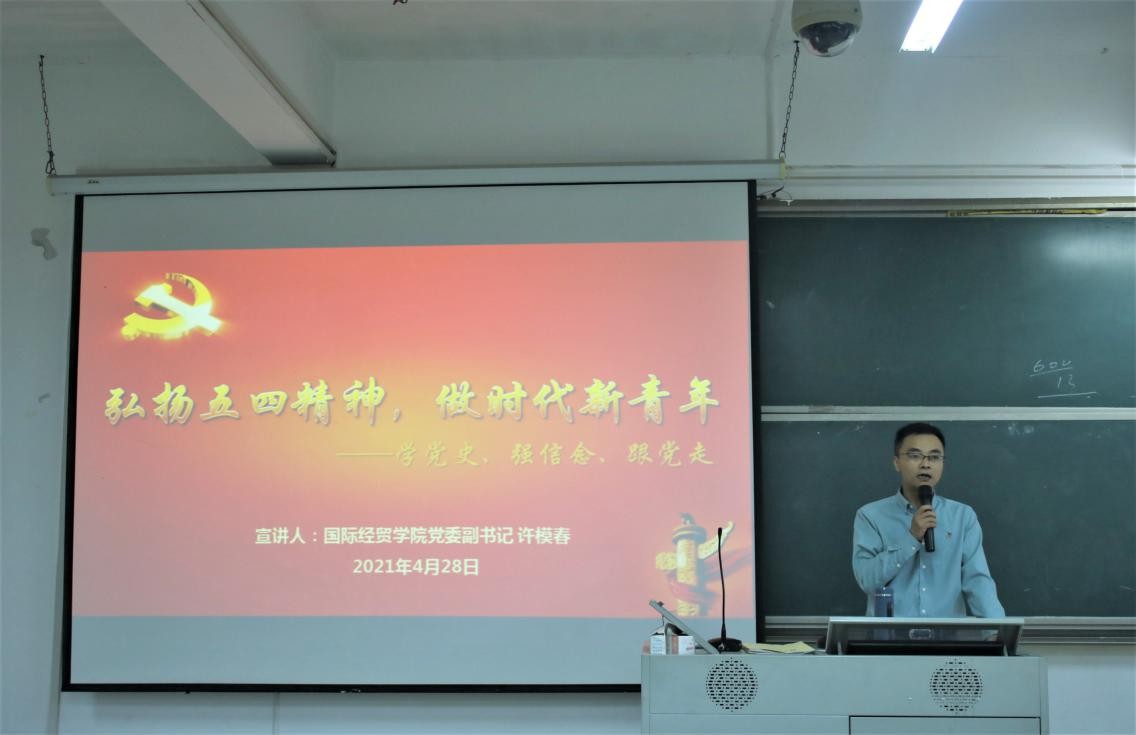 会上,党委副书记许模春做了专题党课。许模春副书记以弘扬五四精神,做时代新青年为主线,从弘扬五四精神,继承优良传统、学党史强信念,听党话跟党走、做时代新青年,堪当复兴重任等三个方面强调共青团作为党缔造和领导的青年政治组织,要把党史学习教育作为发挥党的助手和后备军作用的重大责任,作为团员思想武装和团的思想建设的重要内容,作为深化青少年思想政治引领的重大契机,引导广大团员青年厚植爱党、爱国、爱社会主义的情感,让红色基因、革命薪火带带传承,真正达到“学党史、强信念、跟党走”的目的。