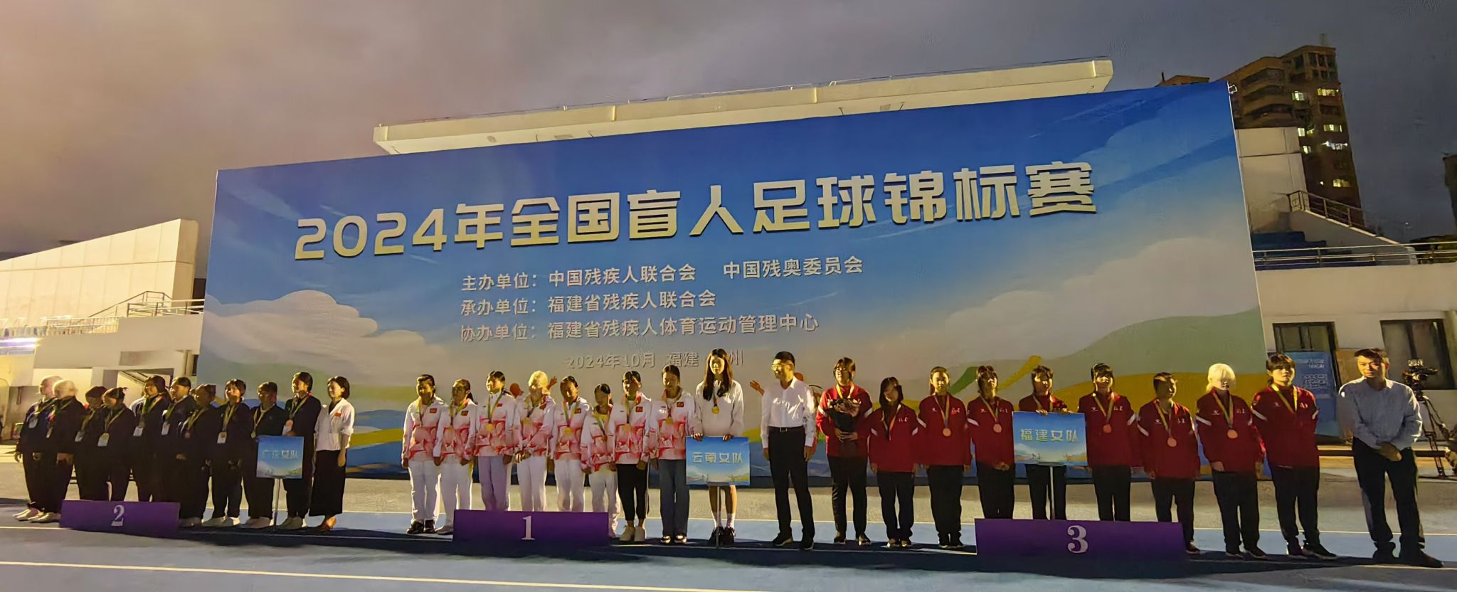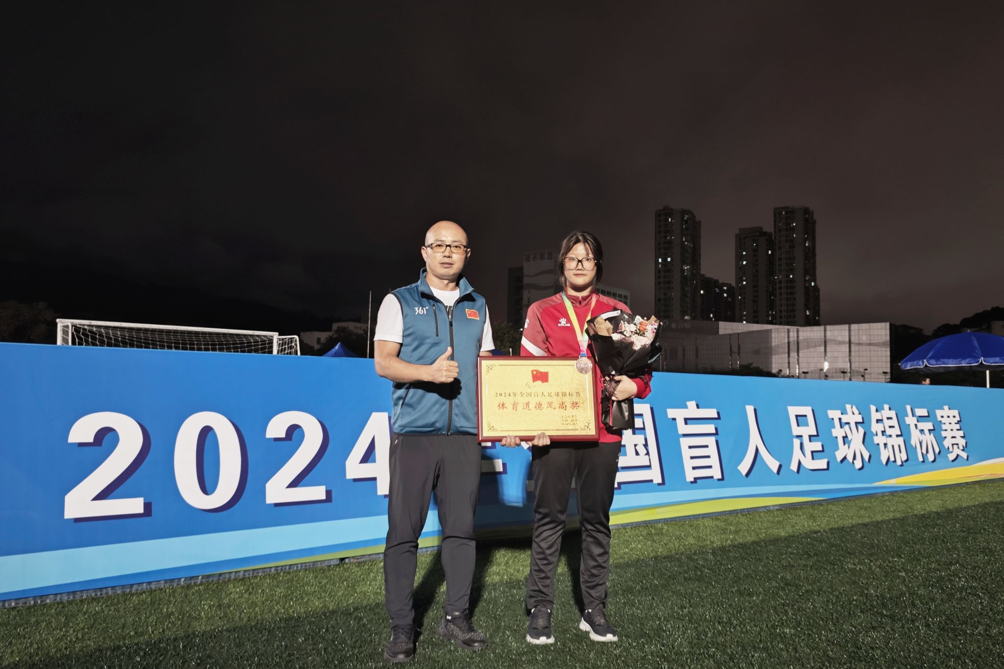 10月22日-28日,2024年全国盲人足球锦标赛在福建省残疾人体育运动管理中心隆重举办。我校李进老师被福建省残联聘请为福建省女子盲人足球队主教练,世界杯2023级国际经济与贸易2班江雅彬同学被选为守门员。
