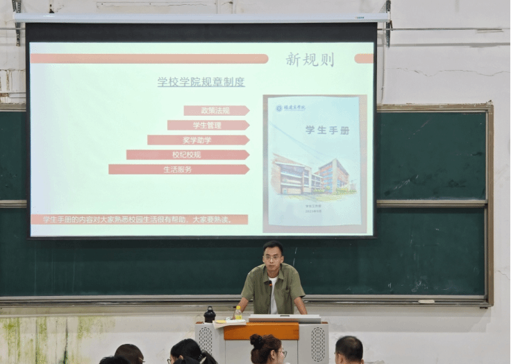知新知心——做好适应教育入学适应性教育是新生适应大学生活、确立发展目标、培养自我的关键一步。新生辅导员们陆续开展入学适应性教育,就思想政治、大学生适应、校纪校规、宿舍管理和安全教育等方面的内容进行全面讲解,激励新生尽快调整状态,明确大学目标,积极参与校园各类活动,提高自身综合素质,收获充实美好的大学生活。