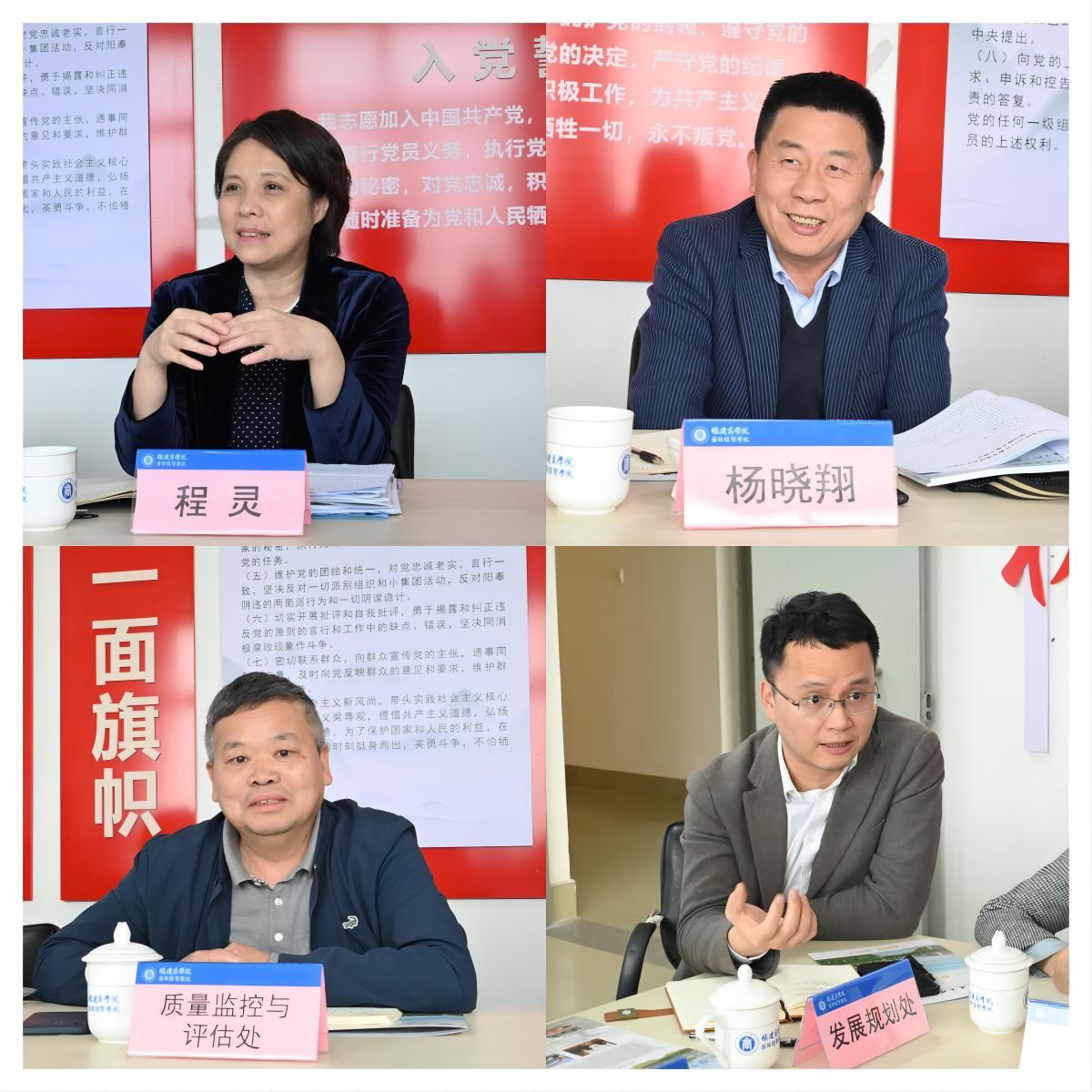 为促进学院积极迎接教育部本科教学工作合格评估,协调解决推进工作中的重点和难点问题,4月4日,程灵校长、杨晓翔副校长率质量监控与评估处、教务处、人事处、发展规划处、后勤管理处、党政办公室等职能部门到世界杯体育官方网站开展迎评工作专题调研,学院党政班子、专业带头人、各系正副系主任、部分教师代表及教学管理人员等参加调研会。