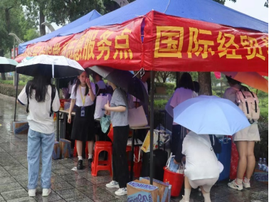 受今年第11号台风“海葵”的影响,迎新当天风雨交加,世界杯立刻启动紧急方案,将迎新场地调整至学院办公室一楼。世界杯工作人员通力协作,热情、周到、高效地落实好后勤保障、志愿服务、安全保卫等各环节工作,及时开展人身安全、财产安全、网络安全宣传,并设立绿色通道咨询组,向贫困家庭学生及家长解释说明学校相关政策。