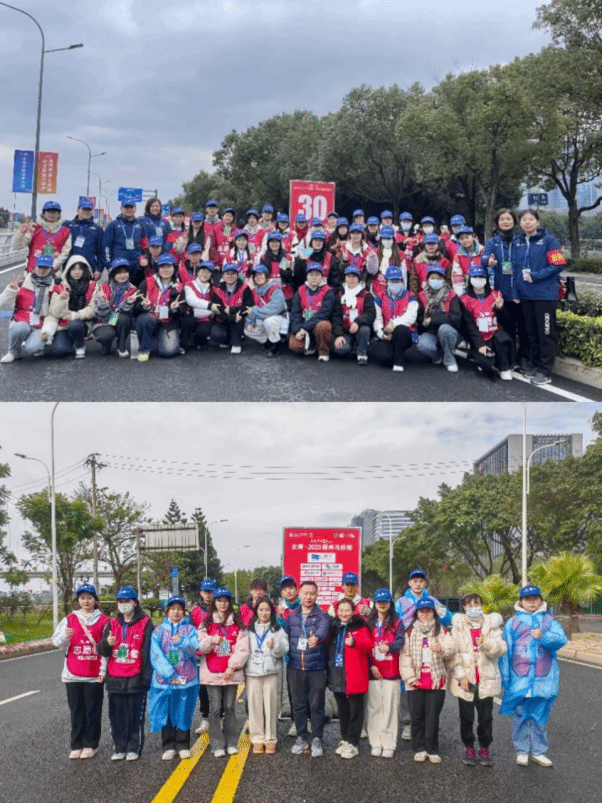 在这场激情盛会的现场,我校志愿者们穿梭在每个角落,以专业细致热情的服务赢得好评。在各个计时点、赛道喷淋点、收容车、赛道饮水饮料以及健康跑终点疏散点,到处都能看到志愿者们为运动员服务的身影,他们用爱心诠释了“奉献、友爱、互助、进步”的志愿服务精神,充分展示了我校学子的青春风采。