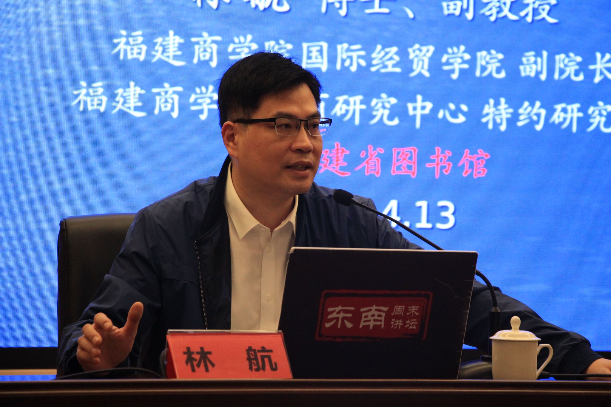 2024年4月13日,世界杯体育官方网站副院长林航应邀在福建省图书馆参加“东南周末讲坛”,作题为“20世纪闽都经济学家群体叙事”的专题讲座。来自福州各单位100多位听众聆听了讲座。