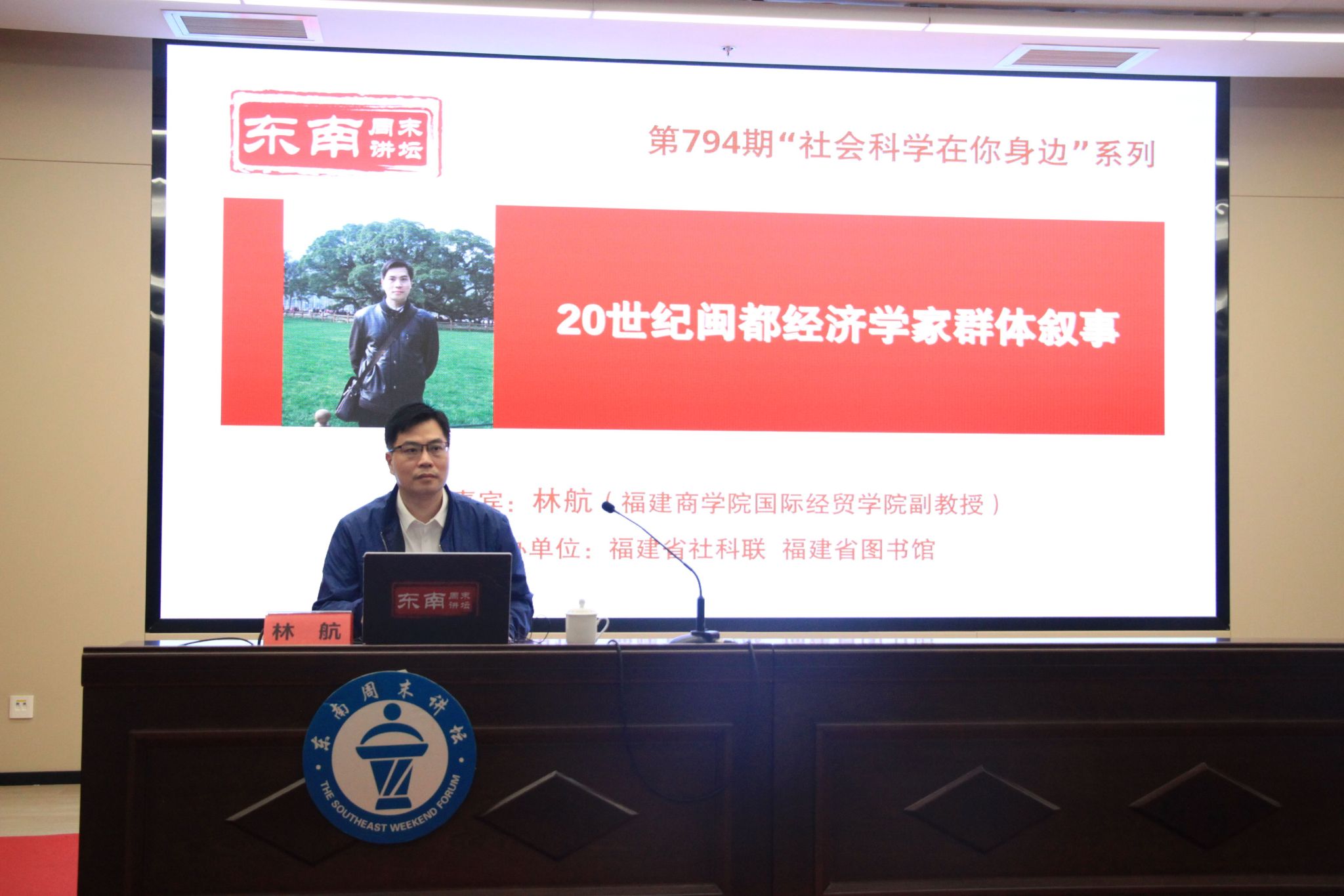 “东南周末讲坛”是由省社科联、省图书馆联合创办的福建省社会科学普及经常性、常态性、大众性的公益平台和精品项目。自2005年开办以来,每周末邀请省内外专家、学者,围绕时政和群众关心的经济、社会、法律和文化等热点问题做客主讲。本场讲座是“东南周末讲坛”“社会科学在你身边”系列,讲座主题是学院理论经济学教学团队从福州本土挖掘原创性思政元素的成果。