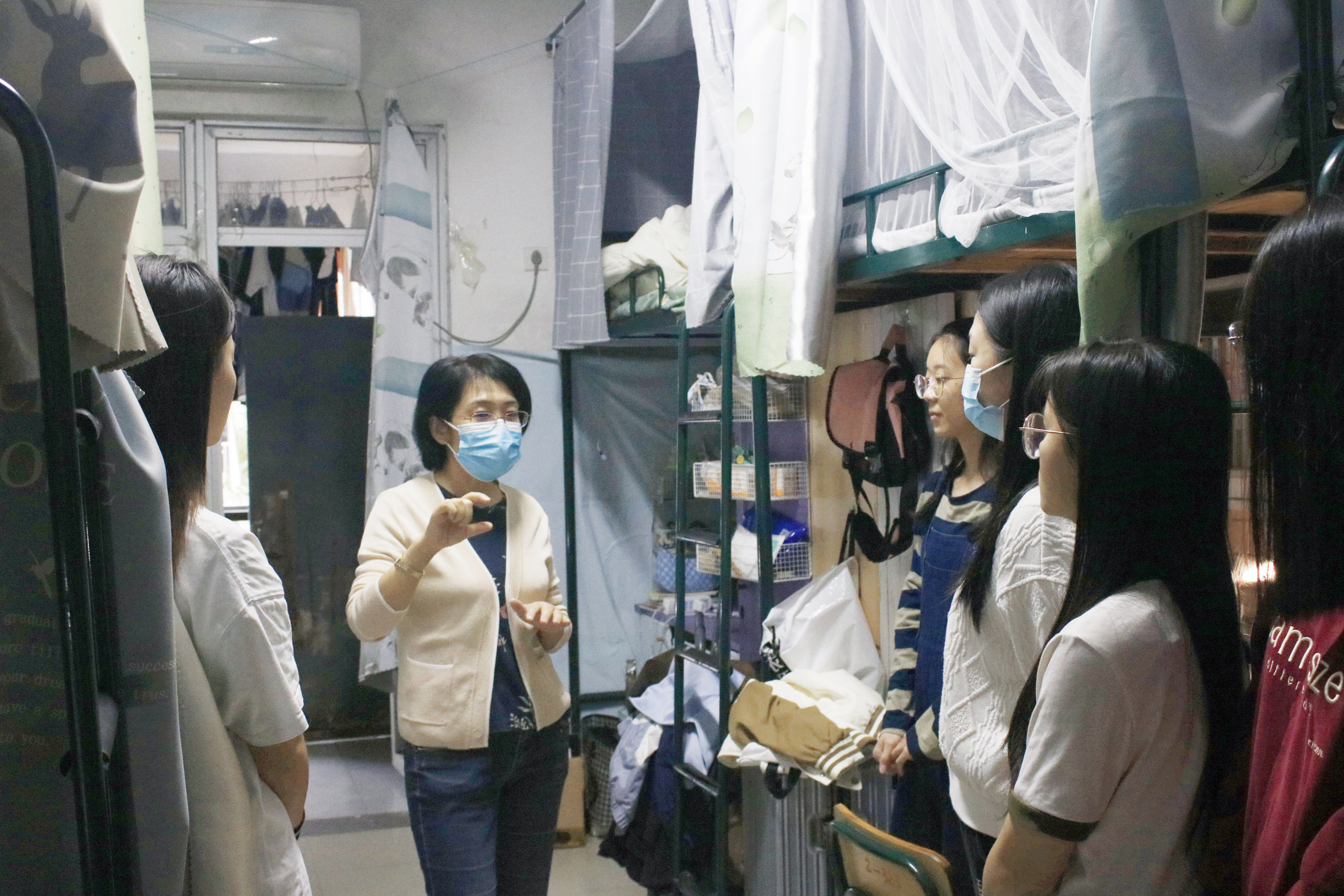 10月29日,世界杯体育官方网站全体师生进行了第七轮全员核酸检测,在疫情期间严格遵守相关规定,同心抗疫。院长张美涛带队值班辅导员深入学生宿舍走访看望,深切关怀疫情期间同学们的学习、生活,送去学院的关心与问候。
