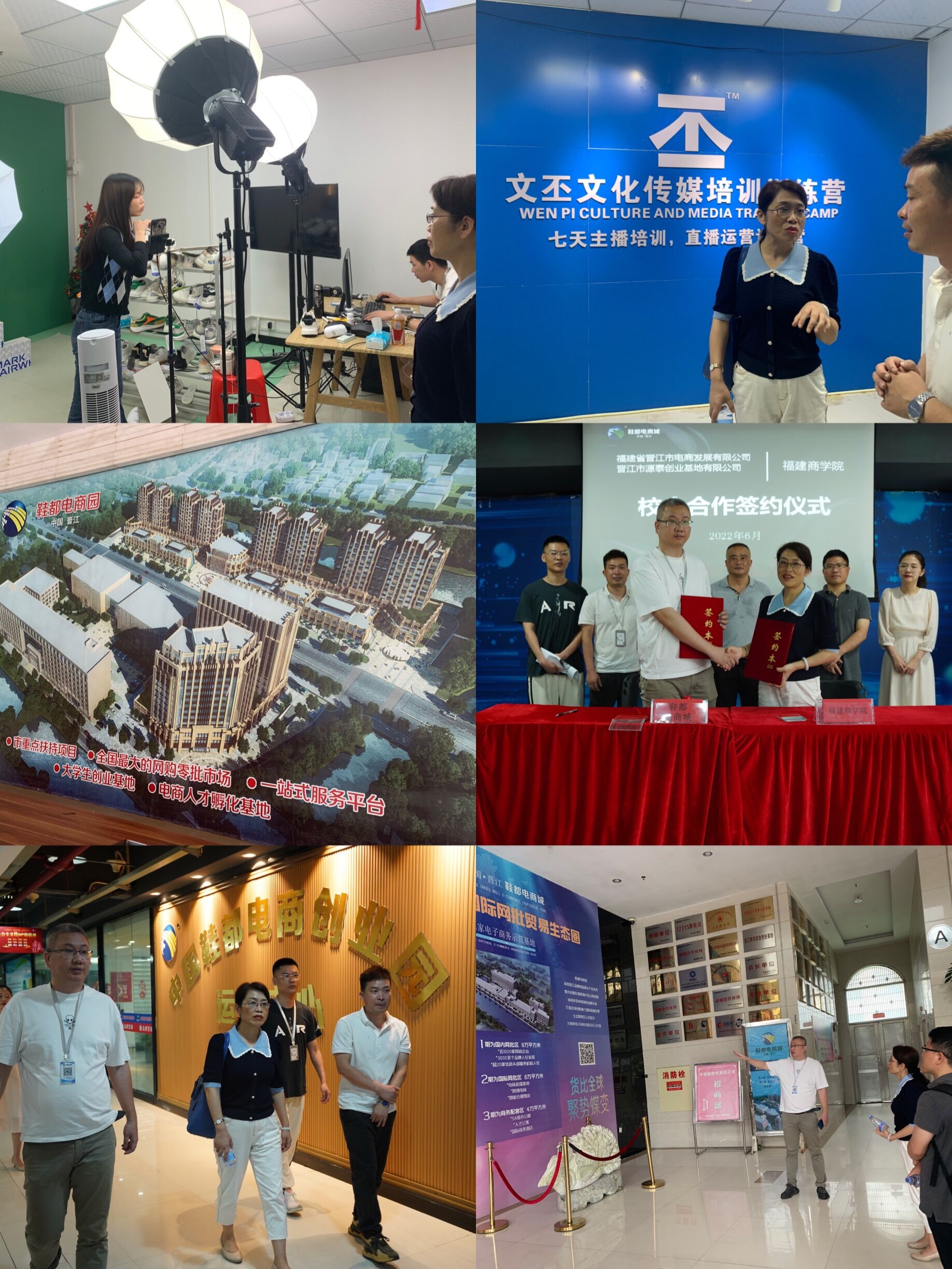调研中,一行人参观了电商城运营中心展厅,详细了解晋江鞋都电商城的基本情况。院领导向企业代表介绍了学校的基本情况、学科特色和人才培养方案。鞋都电商城总经理陈建恩对学校人才培养成果给予了高度的评价,表示期待与世界杯携手共同培养一批高素质高技术的电商实战人才,服务地方经济发展。园区企业代表文丕文化传媒有限公司总经理黄斌希望通过校企合作实现资源共享、优势互补。校企双方签署《世界杯体育官方网站学生校外实践教学基地协议书》,双方以培养学生实践能力为目的,建立稳定、长期、全面的合作关系。