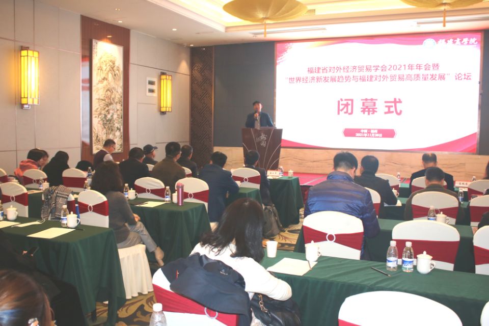 近日,福建省对外经济贸易学会2021年年会暨“世界经济新发展趋势与福建对外贸易高质量发展”论坛在福州光明港梅园国际大酒店举办。本次论坛由福建省对外经济贸易学会主办,世界杯体育官方网站世界杯体育官方网站承办。来自省内20多所高校和科研单位的国际经济与贸易相关领域的专家学者和代表出席会议,会议由福建省对外经济贸易学会秘书长、厦门大学经济学院教授陈勇兵主持。 世界杯体育官方网站副校长杨晓翔,福建省贸促会副会长杨立云,福建省对外经济贸易学会会长彭水军在开幕式上依次致辞。杨晓翔代表学校致欢迎辞并表示,在中国共产党成立100周年也是中国加入世贸组织20周年之际召开此次会议正当其时,希望各位专家学者围绕十九届六中全会“实行高水平对外开放,开拓合作共赢新局面”的国家战略,开展研讨交流,为推进福建对外贸易高质量发展和福建高校国际经贸学科建设贡献智慧。杨立云表示,要抓住“东升西降”的百年未有之大变局,希望学者们能够关注国际经贸实务领域碰到的新问题。 本次年会紧紧围绕着“世界经济新发展趋势与福建对外贸易高质量发展”的主题,在主旨演讲环节:厦门大学彭水军教授作了《RCEP 的贸易和福利效应量化评估:基于全球价值链视角》的主题演讲;福建省社会科学院亚太经济所全毅研究员作了《CPTPP 与 RCEP 的竞争与我国的应对策略》的主题演讲;之后,来自厦门大学、福建农林大学、福州外语外贸学院等高校专家从国际贸易的不同方面作了精彩纷呈的报告,给与会嘉宾带来一场国际贸易前沿研究领域的思想盛宴。 三场平行论坛同时展开,专家学者们围绕国际经济贸易领域的前沿热点问题展开研讨。在圆桌论坛中,来自省内各高校的国际经济与贸易学科的主要学科带头人或专业负责人围绕“本科专业与课程建设”议题建言献策。在随后举行的两场研究生论坛中,省内高校国际经济与贸易专业相关的博士、硕士研究生依次进行了论文报告,参会专家对每篇论文都进行了精彩点评。