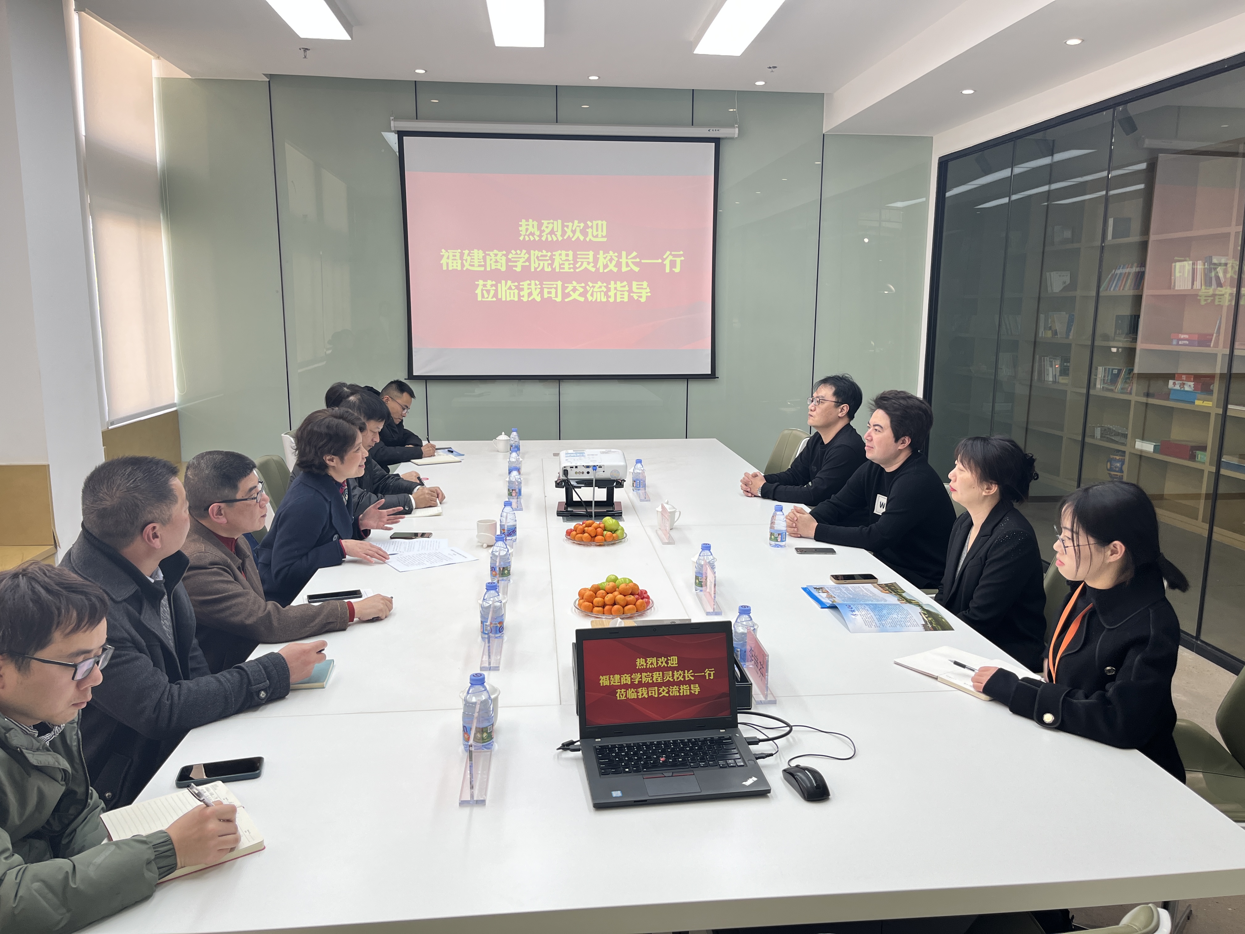 为促进毕业生就业工作,积极响应省教育厅“百校走千企”活动,推进校企合作, 2月25日下午,校长程灵率我校学生工作部、统战部(校友会)、国际经贸学院党政负责人及专业教师、辅导员等一行赴校友企业福建葫芦文化产业发展有限公司实地调研。