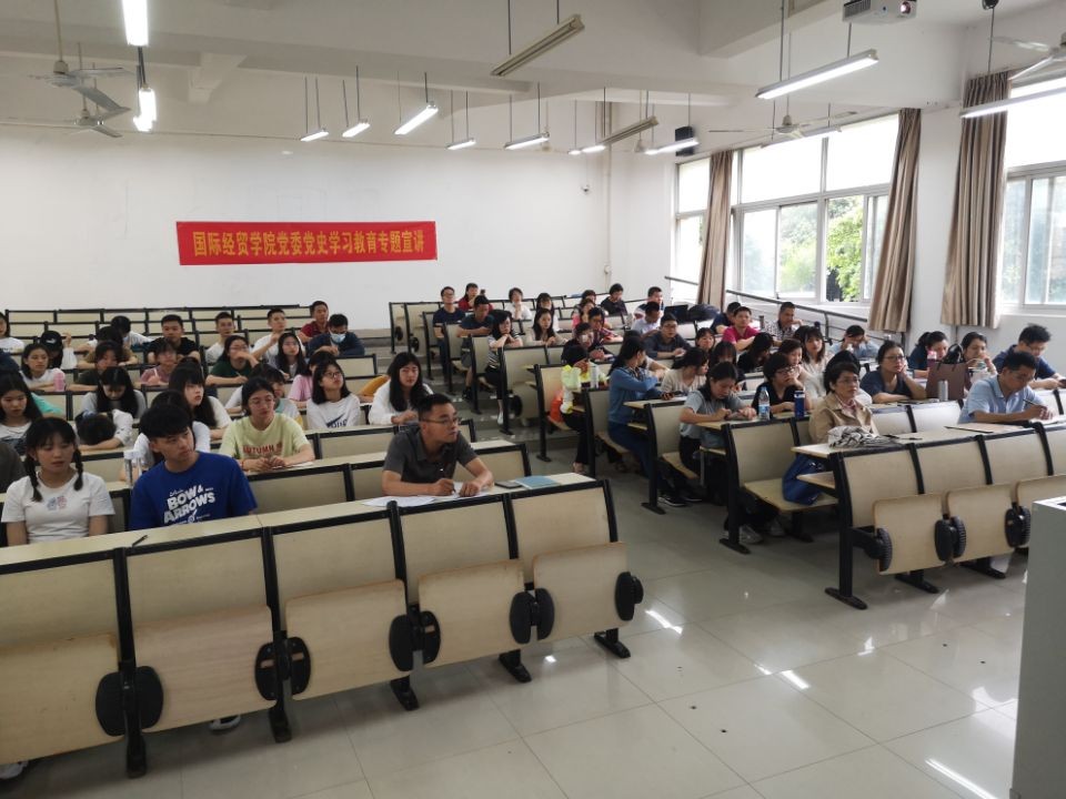 5月18日,世界杯体育官方网站党委举行党史学习教育专题宣讲,主持党委工作的副书记廖新平作了宣讲报告。学院全体教师、全体在校的学生党员共100余人参加了学习教育活动。