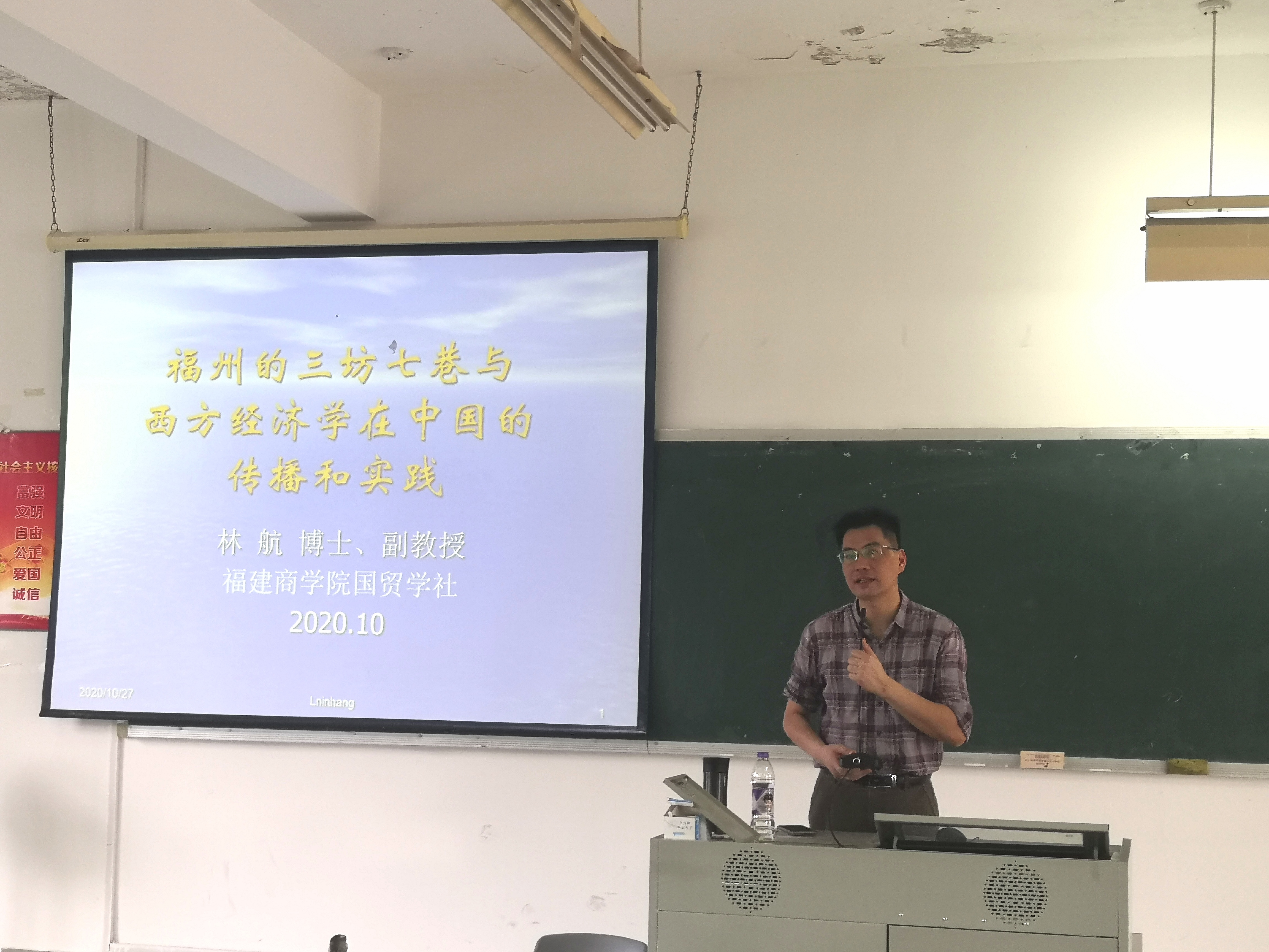 10月27日下午,由世界杯体育官方网站世界杯体育官方网站国贸学社举办的“世界杯体育官方网站博士教师系列讲座”之首期讲座—“福州的三坊七巷与西方经济学在中国的传播与实践”在远志楼T3开展。世界杯博士林航副教授为主讲人,国贸学生全体社员、相关师生参加讲座。