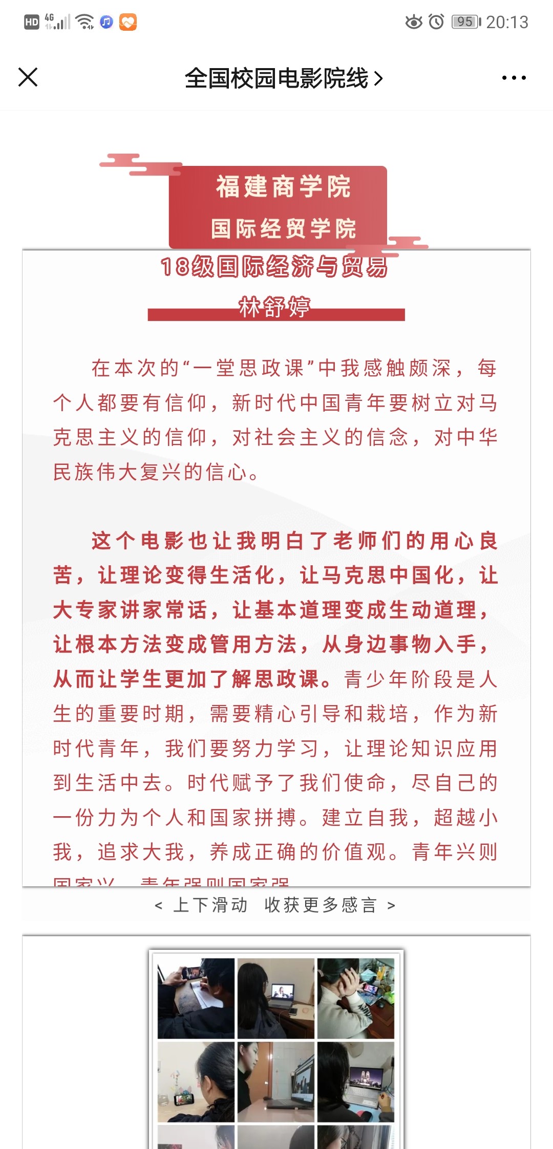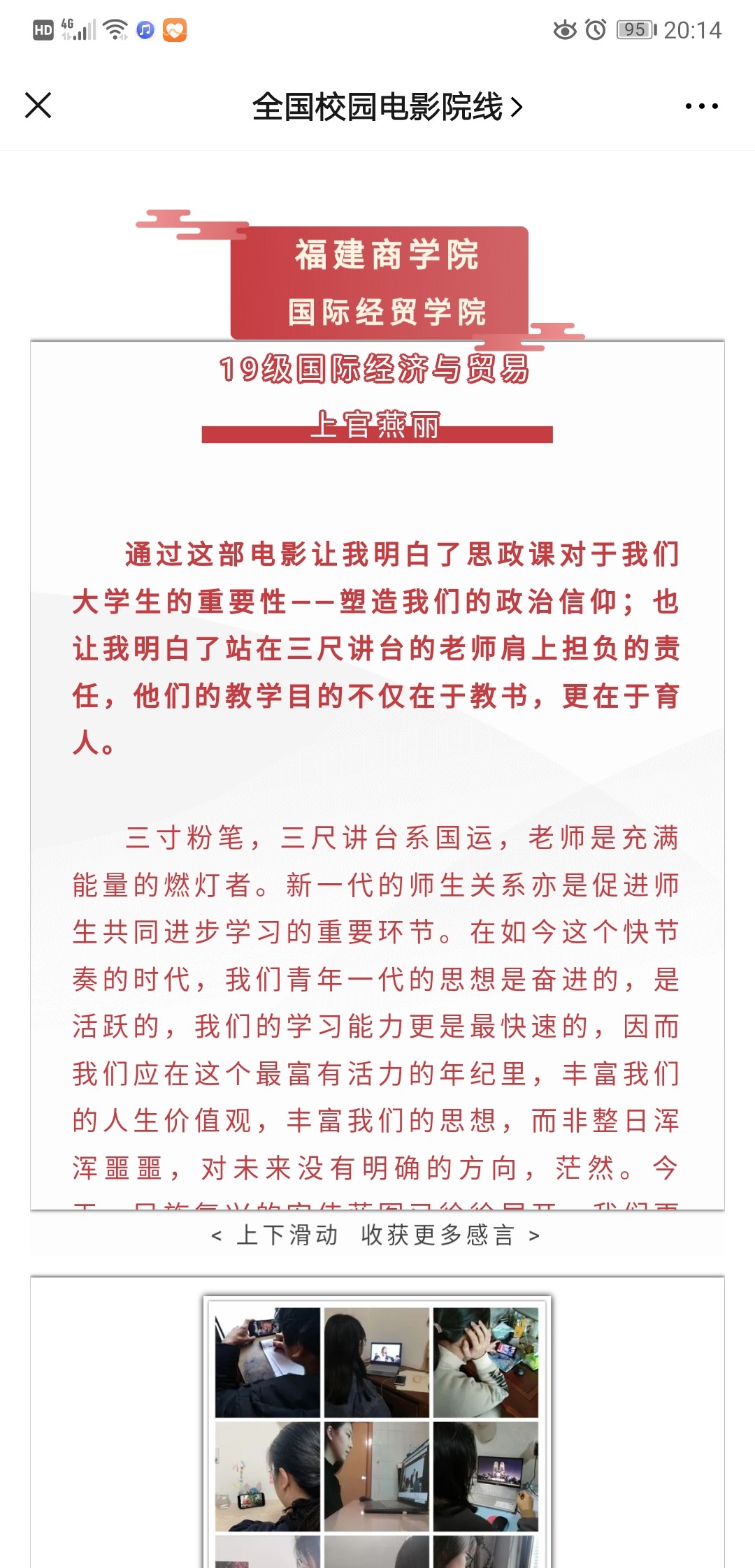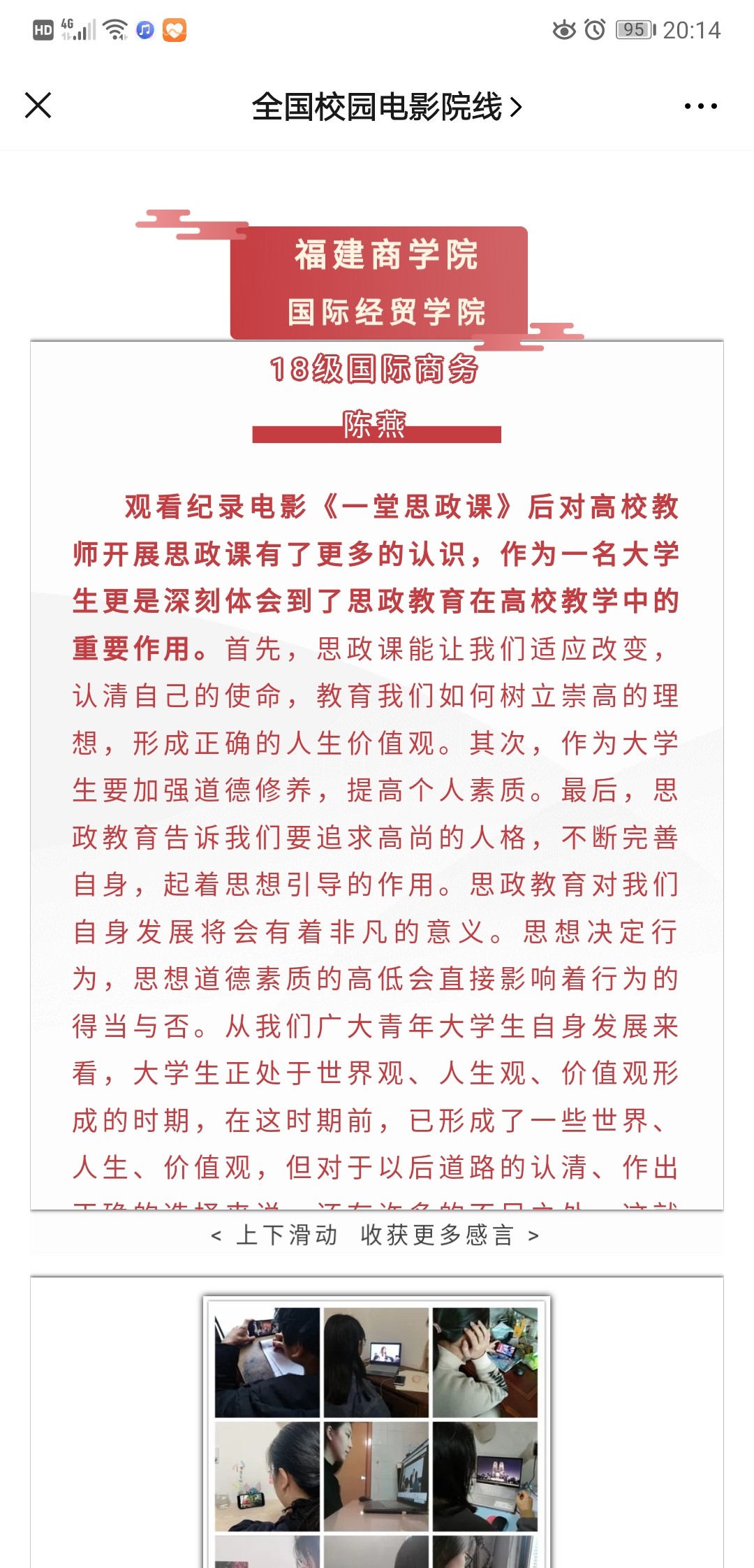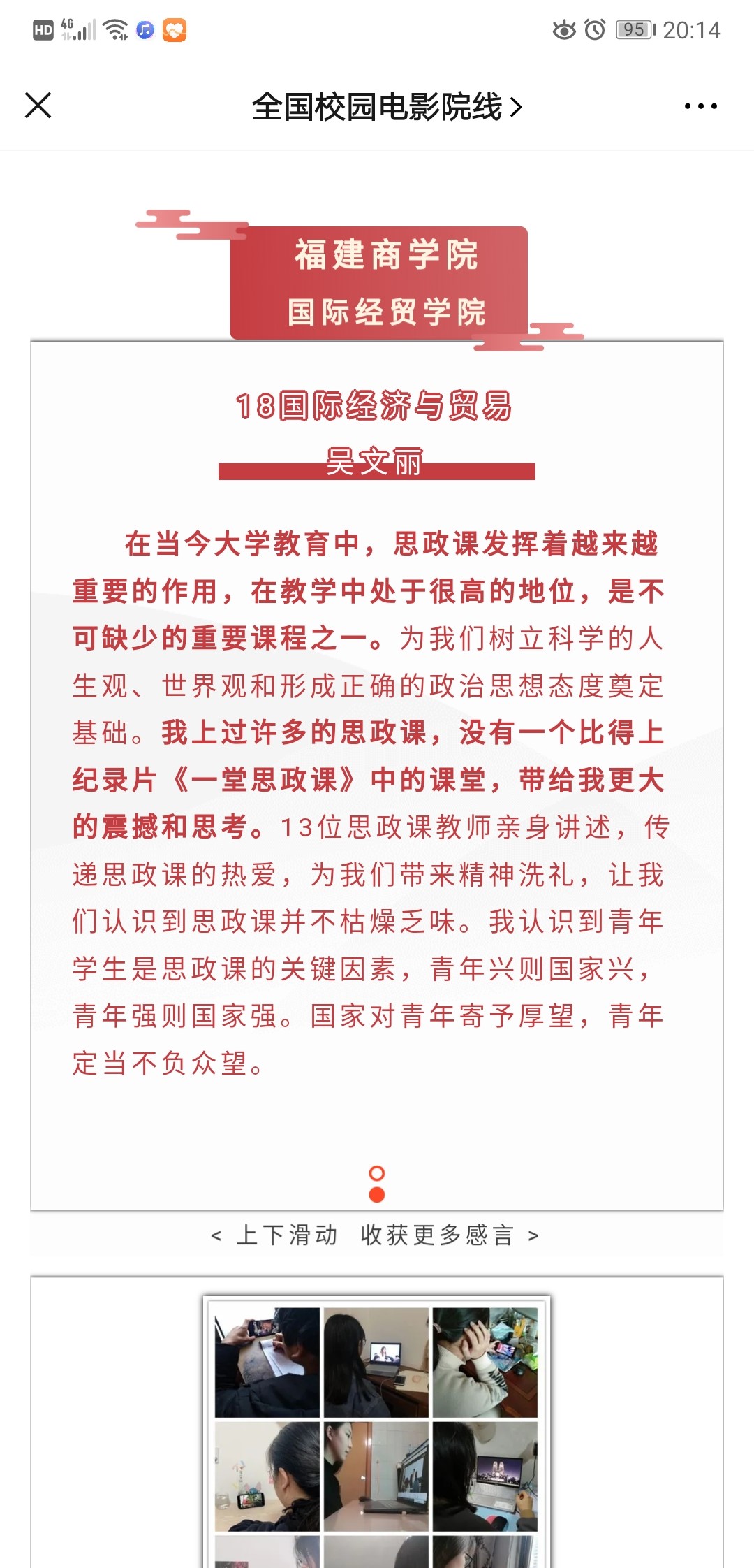 全国校园电影院线公众号选登世界杯学生《一堂思政课》观后感