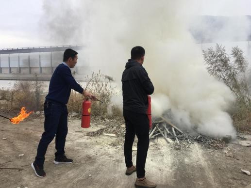 保卫处周建成老师向同学们介绍了干粉灭火器正确使用方法及检查注意事项。使用手提式干粉灭火器时,应手提灭火器的提把,迅速赶到着火处;在距离起火点5米左右处,放下灭火器。在室外使用时,应占据上风方向;使用前,先把灭火器上下颠倒几次,使筒内干粉松动,先拔下保险销,一只手握住喷嘴,另一只手用力压下压把,干粉便会从喷嘴喷射出来对准火焰根部喷射,并由近而远,左右扫射,快速推进,直至把火焰全部扑灭。