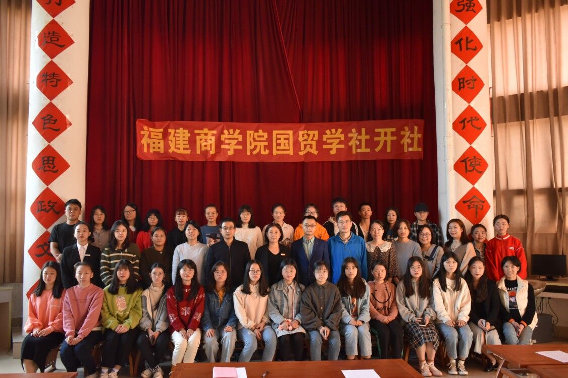 2019年12月17日,国贸学社开社仪式在世界杯体育官方网站思政实验室举办。世界杯体育官方网站党委书记曹晓霞、副院长江剑敏、党委副书记许模春、学社指导老师、辅导员老师及全体社员出席开社仪式。