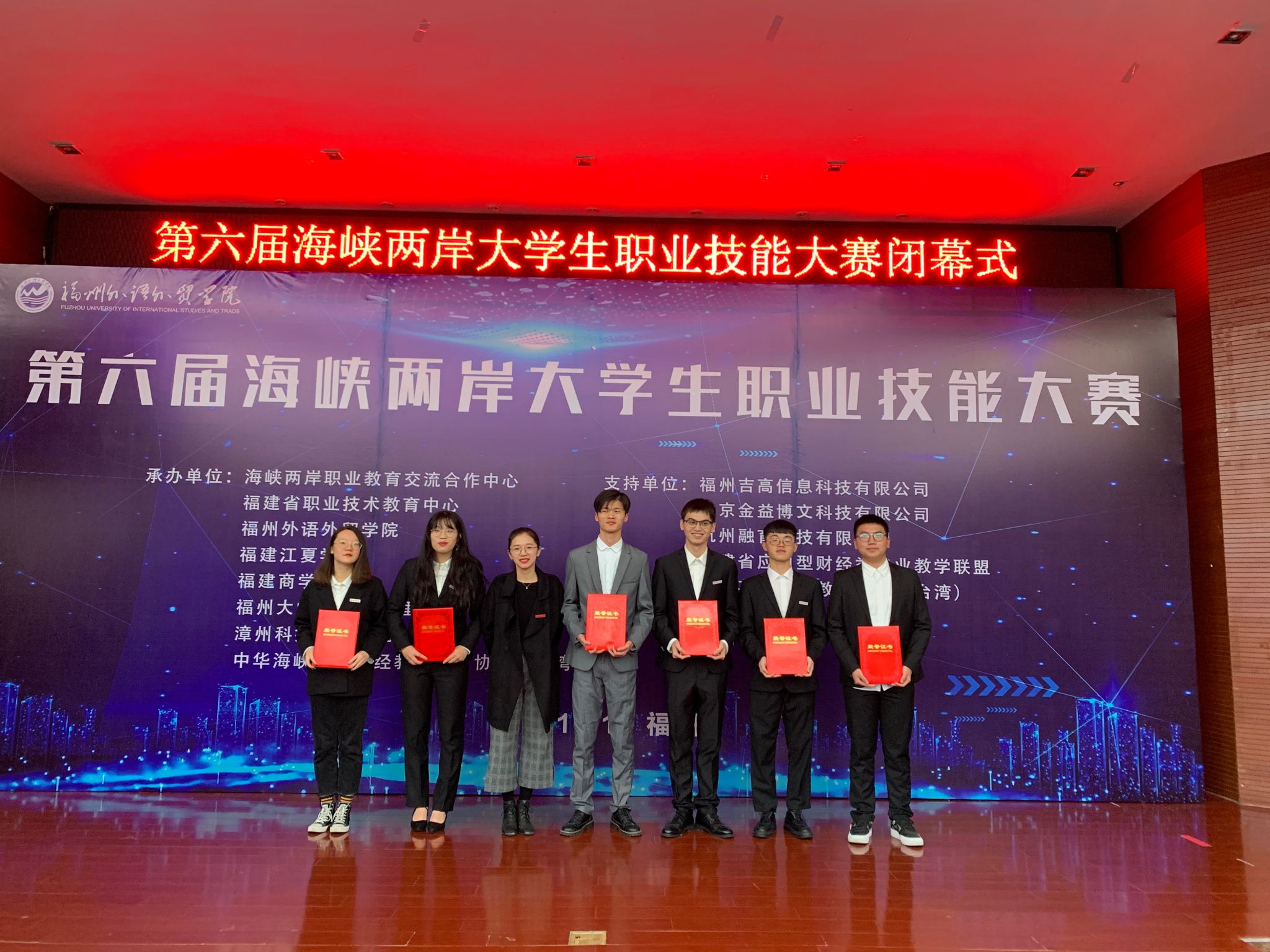 2019年12月29日,由福建省教育厅和教育部高等学校经济与贸易类专业教学指导委员会主办的第六届海峡两岸大学生职业技能大赛在福州外语外贸学院举行。江西财经大学、福建师范大学、新疆财经大学、烟台大学等大陆6个省市40余所高校及台湾中原大学等3所台湾高校代表队参赛。我校世界杯体育官方网站林丹晨、黄智杰、刘康、陈燕平、彭霆峰、孟令鑫六名同学组成的代表队(指导老师:林超、江剑敏)在全国高校第三届两岸大学生国际贸易经营实战沙盘竞赛本科组中获得团体三等奖、国外公司二等奖和国内公司三等奖。