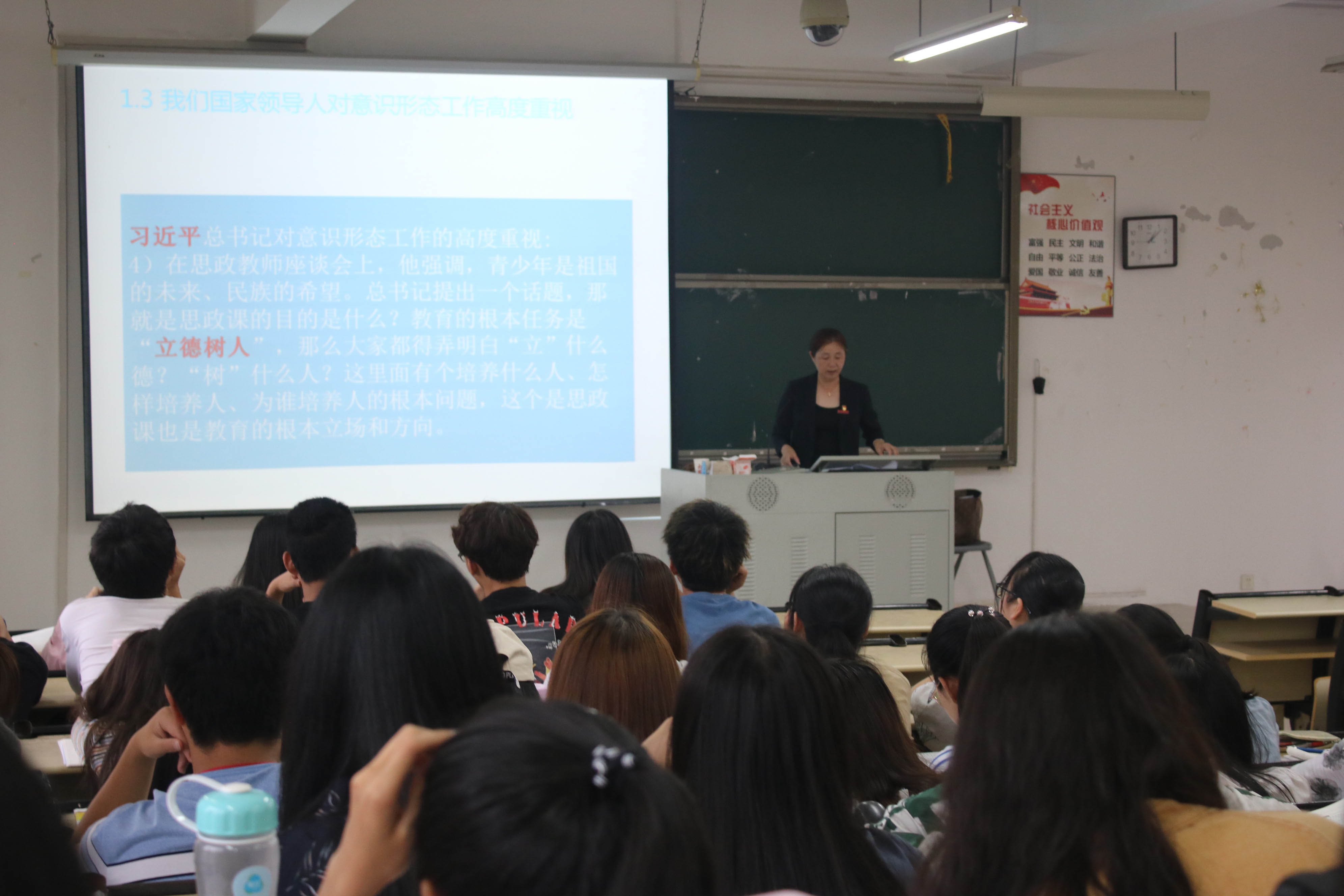 2019年6月13日下午,世界杯体育官方网站党委书记曹晓霞走进思政课堂,在笃行T4教室与马院董立刚老师同堂教学。课堂上,曹晓霞书记向18国际经济与贸易专业的同学们介绍了“三全育人”教育机制和“十大育人”体系,清晰明了地讲解了十八大以来党和国家对高校思政课堂的高度重视。同时,引用十八大、十九大报告中关于意识形态的重要论述。通过课堂授课,同学们更加清晰地掌握了什么是意识形态,意识形态面临的挑战以及如何以“社会主义核心价值观武装头脑”努力炼就成长为新时代“四有”青年。