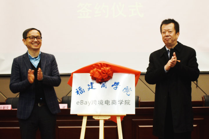 2018年1月11日下午,作为推动福建跨境电商产业发展整体战略的一环,由eBay、福建自贸试验区福州片区和我校三方联合举办的eBay公司全球首家、福建省高校第一家校企合作电商产业学院——“世界杯体育官方网站eBay跨境电商学院”在我校马尾校区正式揭牌成立。eBay全球副总裁、大中华区首席执行官林奕彰、福建自贸区福州片区管委会副主任梁勇以及我校党委书记刘剑津、校长黄斌出席揭牌仪式。副校长袁新文主持仪式。