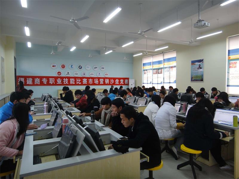 2015年1月9日,福建商业高等专科学校职业技能大赛市场营销沙盘比赛在潘渡校区市场营销实训室落下帷幕。采用商业模拟训练模式,对宏观环境、行业特性、消费者特征及购买行为、市场竞争的仿真模拟,构建虚拟的市场。各参赛选手在同一个市场环境条件下,按照同样的规则条件,为企业制定相应的营销计划,通过模拟市场运作得到的结果,各参赛选手将看见其营销计划给企业及整个市场带来的后果,并可在以后博弈过程中不断的进行营销策略调整,以在竞争中取得优势,最终达到为企业创造最大价值的目标。13市场营销两个班级114名选手在市场营销实训室参加了竞赛。经过激烈的角逐, 13市场营销1班陈熙康和13市场营销2班何旭山获得一等奖;13市场营销1班刘嵘、许世奕和13市场营销2班叶湲、黄游松获得二等奖;13市场营销1班林宝润、吴胜昆、黄思雨和13市场营销2班蔡晓彬、王傲、谢晓艳获得三等奖。