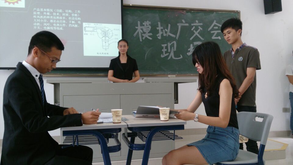 模拟广交会情景模拟汇演,是我系13级国际贸易实专业独立实训周的内容之一。本次实训采用模块式结构,以广交会商务活动为线索,介绍相关的礼仪规范。通过实训,学生可以了解广交会商务活动中相关的不同场景所应当遵循的礼仪规范,掌握商务活动的交际技能和技巧。