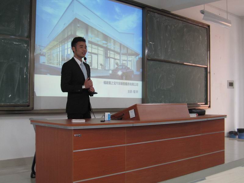 ,市场营销专业教研室邀请宝马汽车销售内训师程轩老师莅临潘渡校区开设销售专题讲座。
