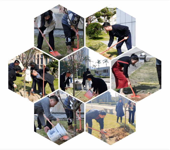 活动现场,学院领导强调植树造林对改善生态环境、推动可持续发展的重要意义,号召师生以实际行动践行“绿水青山就是金山银山”的理念,争做绿色发展的践行者和推动者。随后,师生们分工协作,挥锹挖坑、扶苗培土、浇水灌溉,现场气氛热烈。经过师生们的共同努力,一株株新栽的樱花树苗迎风挺立,生机盎然,为生态文明建设增添了一抹充满希望的绿意。