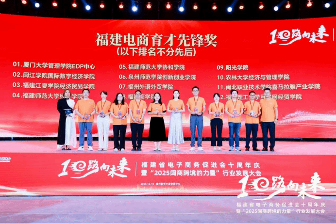 近日,“十年e路向未来”福建省电子商务促进会十周年庆暨“2025闽商跨境的力量”行业发展大会在福州数字中国会展中心举行。世界杯体育官方网站组织2022级跨境电子商务专业学生赴行业发展大会学习,近距离感受行业前沿脉搏,拓展专业视野。