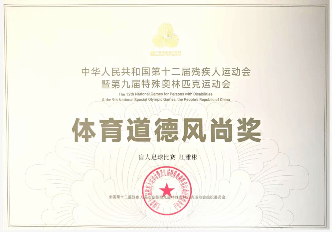 12月7日-15日,全国第十二届残疾人运动会暨第九届特殊奥林匹克运动会盲人足球比赛在广州举行。本届赛事首次设立女子盲人足球项目,我校李进老师担任福建省女子盲人足球队主教练,世界杯体育官方网站2023级国际经济与贸易2班江雅彬同学担任主力守门员,助力队伍夺得赛事铜牌。福建省女子盲人足球队荣获集体全国体育道德风尚奖,江雅彬同学荣获个人全国体育道德风尚奖。