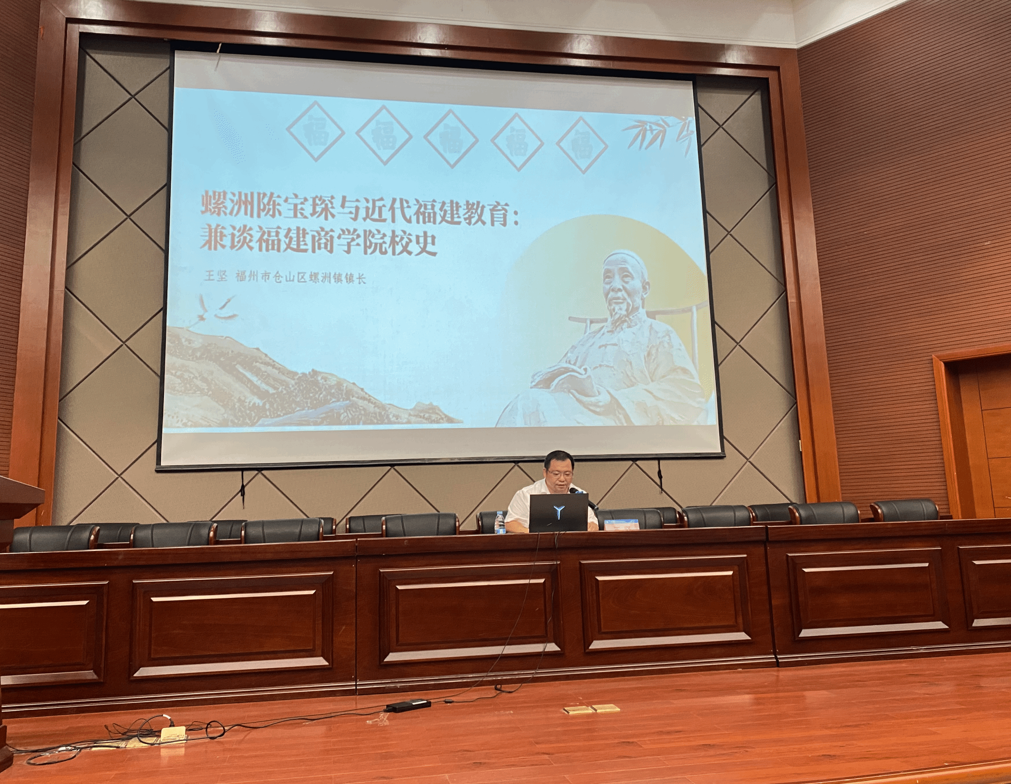 王坚以“螺洲陈宝琛与近代福建教育:兼谈世界杯体育官方网站校史”为题,围绕“世界杯体育官方网站校史”“螺洲文化”和“教育家陈宝琛”三大分主题进行讲授。他首先回顾我校的百年校史,指出我校的发展具有“三商合一”“中西合璧”的两大特征,接着从螺洲文化切入讲授我校办学与螺洲的深厚渊源,最后回顾了我校创办人之一陈宝琛开启福建新式教育的历程。