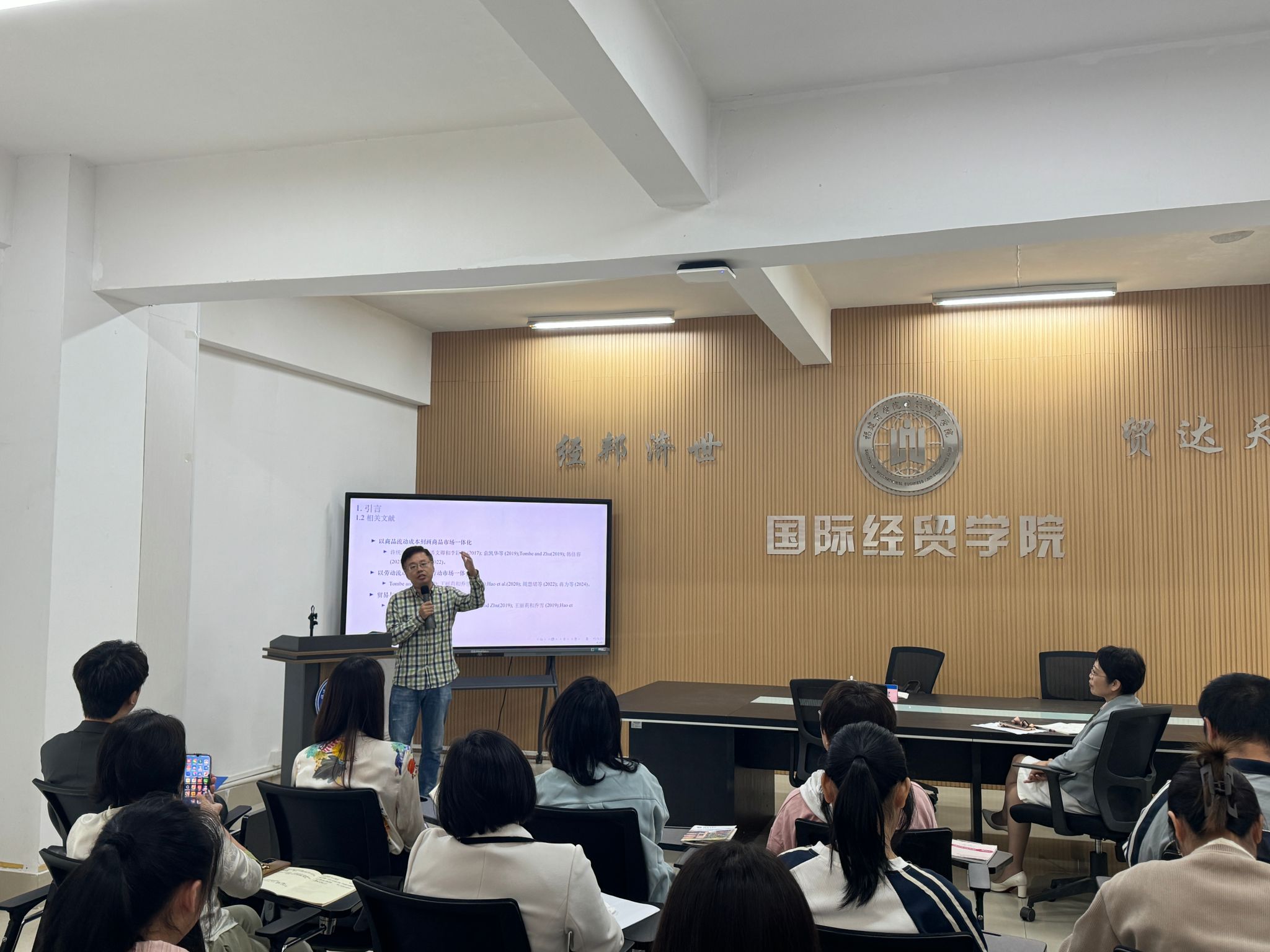 张少军以《全国统一大市场的进程评估、空间关联与福利效应》为题,详细阐述了全国统一大市场的进程评估、进程的状态转移概率、空间关联效应以及对经济社会发展的福利效应。张教授的讲座深入浅出,通过基于Krugaman和Reeding理论模型构建与推演了全国统一大市场的福利效应,通过理论模型的推导和软件系数的模拟,让师生们感受国内国外双循环以及全国统一大市场会给国人带来更大的福利效应,也因此对全国统一大市场的建立有了更深入的理解。两个讲座向师生们很好地展示了论文的问题意识、创新意识以及咨政意识。
