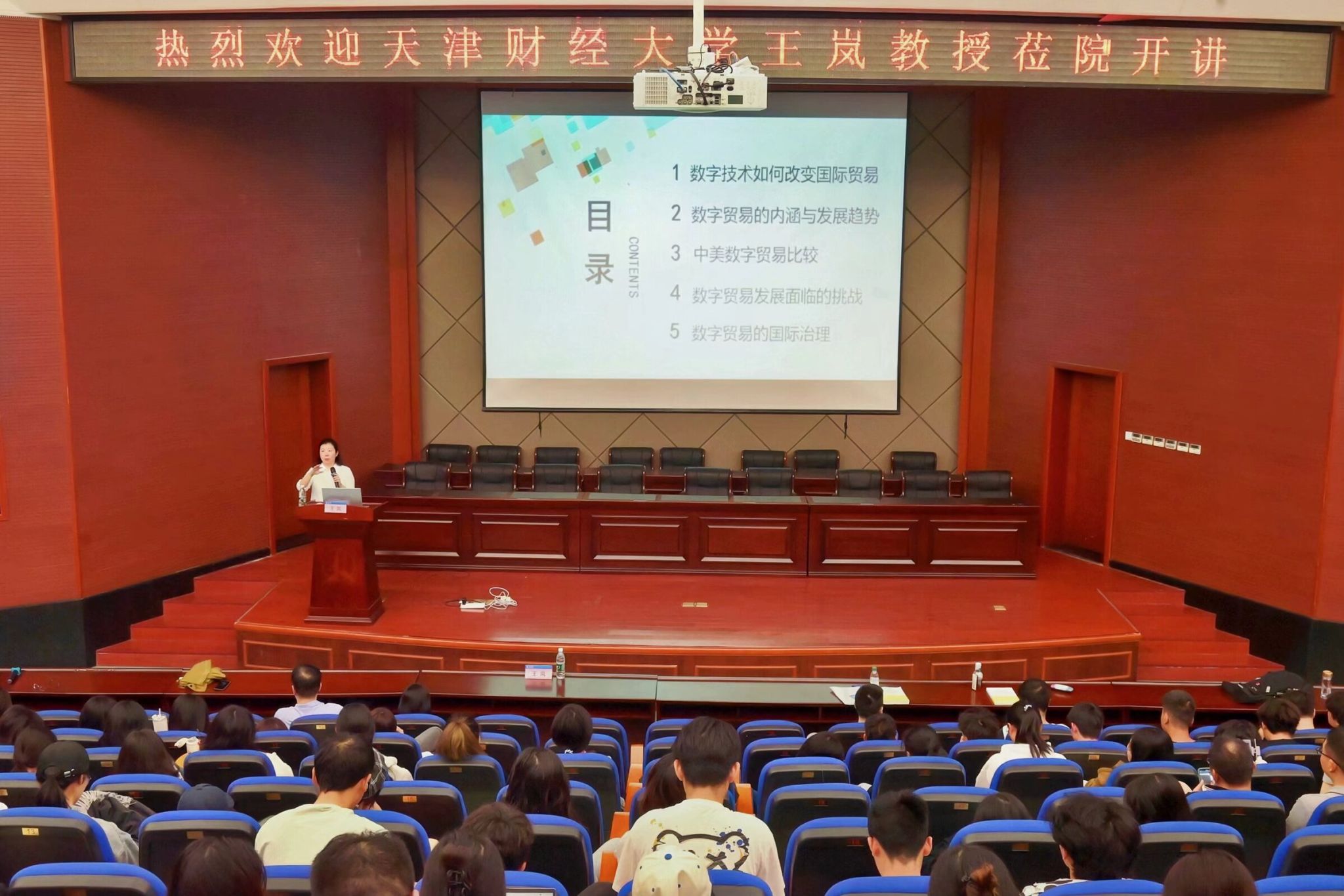 11月11日上午,天津财经大学数字经济与管理学院副院长、中国服务贸易协会专家委员会专家王岚教授受邀为世界杯体育官方网站师生作题为《数字时代的国际贸易:内涵、趋势与治理》的学术讲座。世界杯体育官方网站院长张美涛主持讲座。
